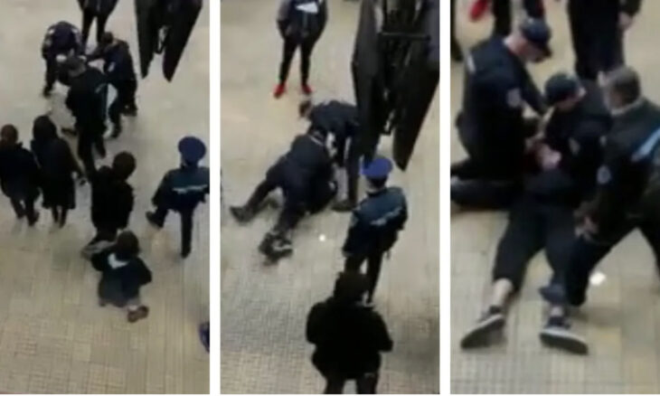 La scena şocantă au asistat mai multe persoane. Oamenii aflaţi pe peron au intervenit şi le-au spus poliţiştilor şi jandarmilor să se oprească.