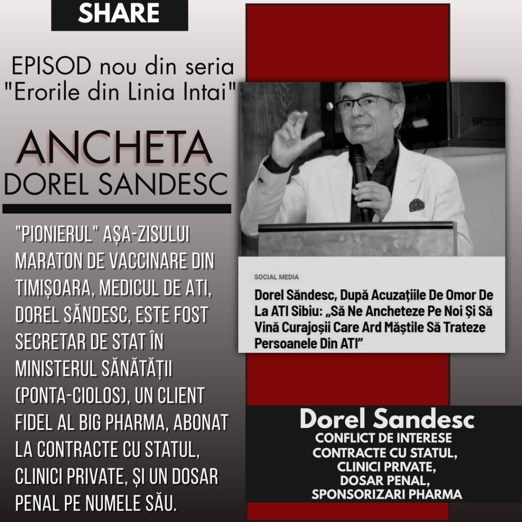 Inițiatorul așa-zisului Maraton de Vaccinare din Timișoara, medicul de ATI, Dorel Săndesc, este fost secretar de stat în Ministerul Sănătății (Ponta-Ciolos), un client fidel al Big Pharma, abonat la contracte cu statul și are și un dosar penal pe numele său.