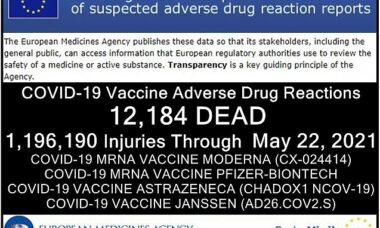 Raportul celor de la EudraVigilance până la 22 mai 2021 enumeră 12.184 de decese și 1.196.190 de vătămări în urma administrării a patru vaccinuri experimentale anti-COVID: