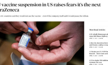 Bombă de proporții: SUA a recomandat ieri suspendarea vaccinării cu Johnson & Johnson după mai multe rapoarte privind probleme apărute după efectuare, mai precis cheaguri de sînge. Azi, România anunță triumfal recepția a primelor 60.000 de doze din respectivul vaccin. Și tot azi, publicația europeană Politico scrie că J&J se îndreaptă spre statutul de următorul AstraZeneca și lansează marea întrebare: țările europene vor suspenda curînd utilizarea sa?