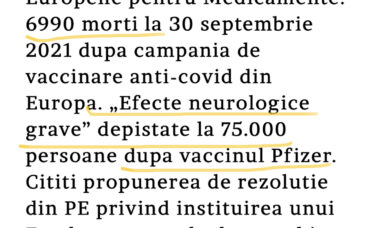 Citește mai mult6.990 de morți după vaccinare în perioada decembrie 2020 și septembrie 2021 în UE. 75.000 de efecte adverse neurologice grave