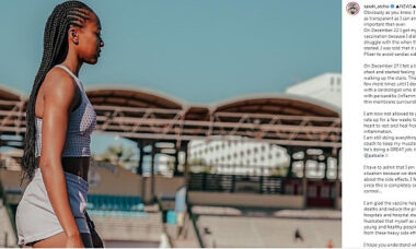Atleta Sarah Atcho din Elveția a făcut pericardită la 5 zile după doza „booster” (a treia doză) a serului experimental Pfizer, lucru care o împiedică să mai facă efort și, deci, îi compromite antrenamentele pentru competițiile următoare.